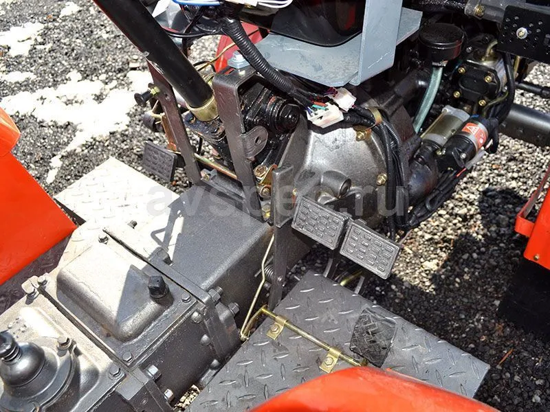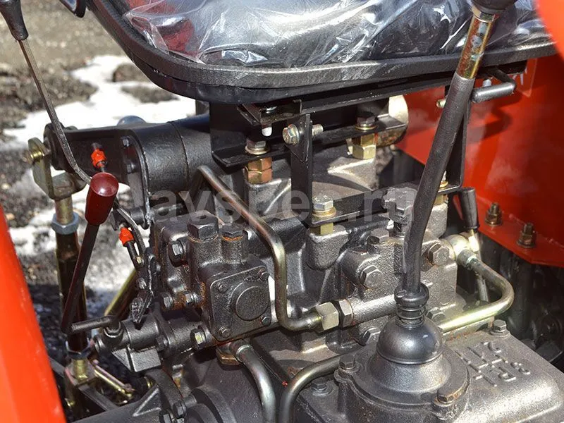 Отличительная особенность – прямой привод от двигателя к трансмиссии. Во-первых, с такой конструкционной особенностью при эксплуатации не происходит даже минимальных потерь мощности. Во-вторых, она защищает внутренние узлы от пыли и грязи, поэтому долговечность трактора продлевается, а детали изнашиваются меньше.